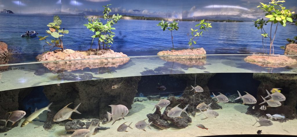 Het is zonnig en al warm buiten. We besluiten om maar meteen een ochtend wandeling te gaan maken, nu het qua temperatuur nog wat milder is. Op een half uurtje lopen van het hotel is het Aquarium van Guadeloupe te vinden. Google Maps wijst ons de weg, hoewel het na het sportpaleis wel een stukje over een vaag bospad gaat.