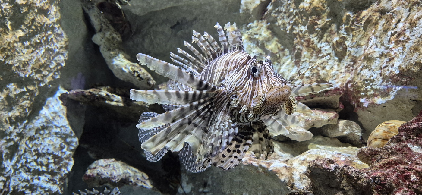 Het aquarium is niet heel groot, maar de bassins die ze hebben, zijn wel heel erg mooi. Alles wat we hier kunnen zien, vindt zijn oorsprong in de Caraïben. We zien veel koraal, anemonen en tropische vissen. In de grotere bassins zijn ook haaien te vinden, murenes en een paar schildpadden die nog aan het dutten waren. Er zijn amper andere bezoekers, dus we kunnen alles rustig op ons eigen tempo bekijken.