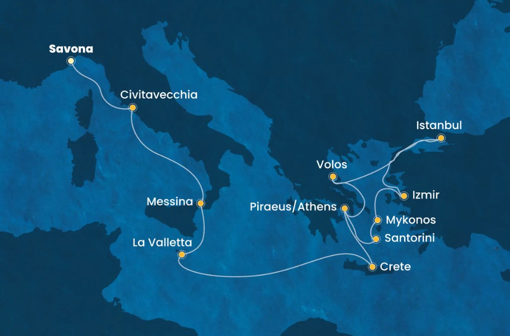 Italië, Malta, Griekenland en Turkye.