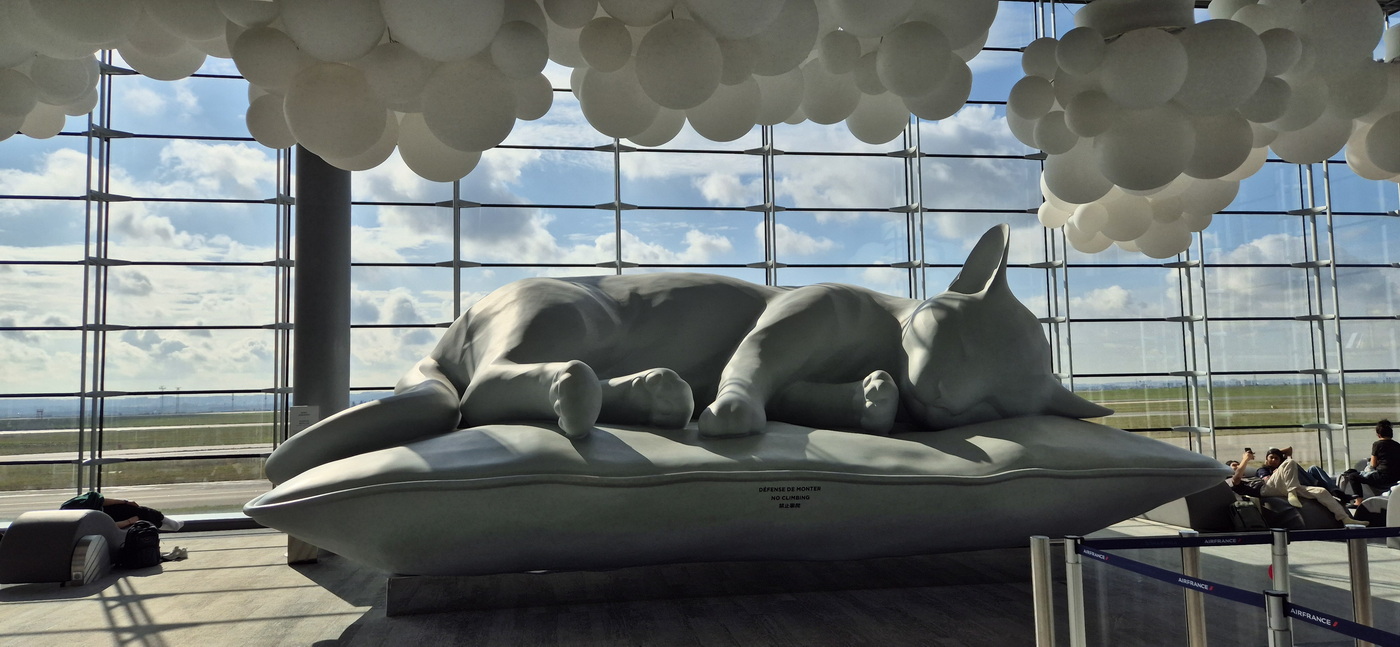 De eerste vlucht is naar Charles de Gaulle airport in Parijs. Aan boord hebben we gratis wifi met volledig internet. We komen ruim op tijd aan en moeten dan door naar de terminal met gate L22. Onderweg nog even door de paspoortcontrole.