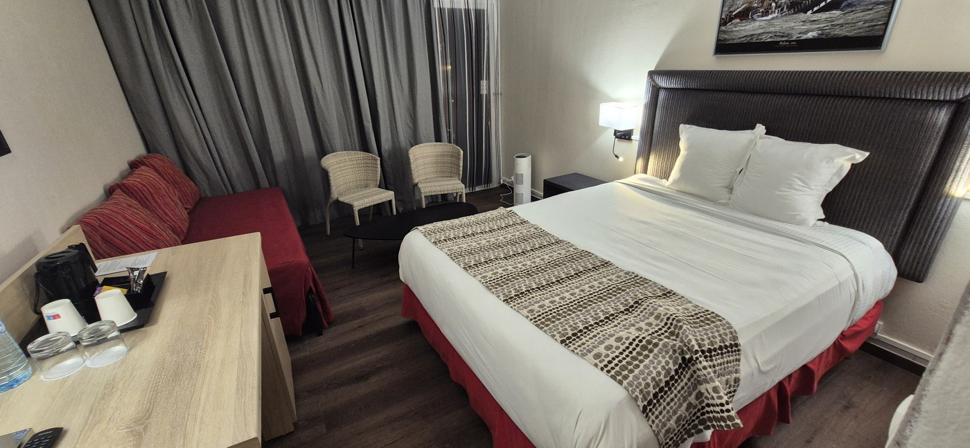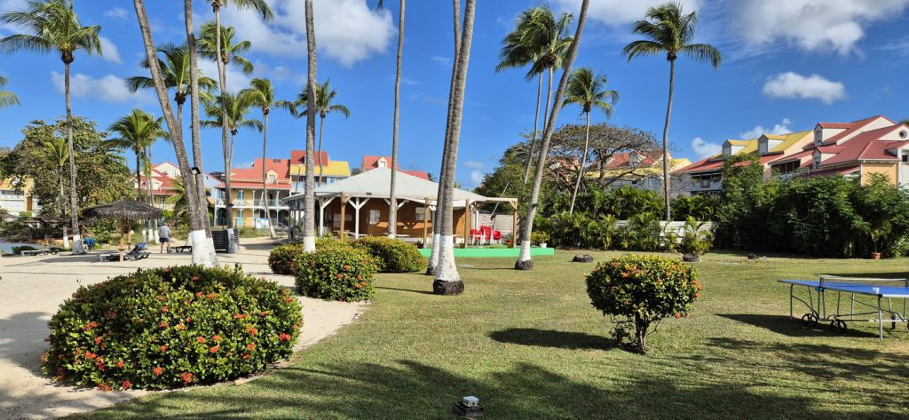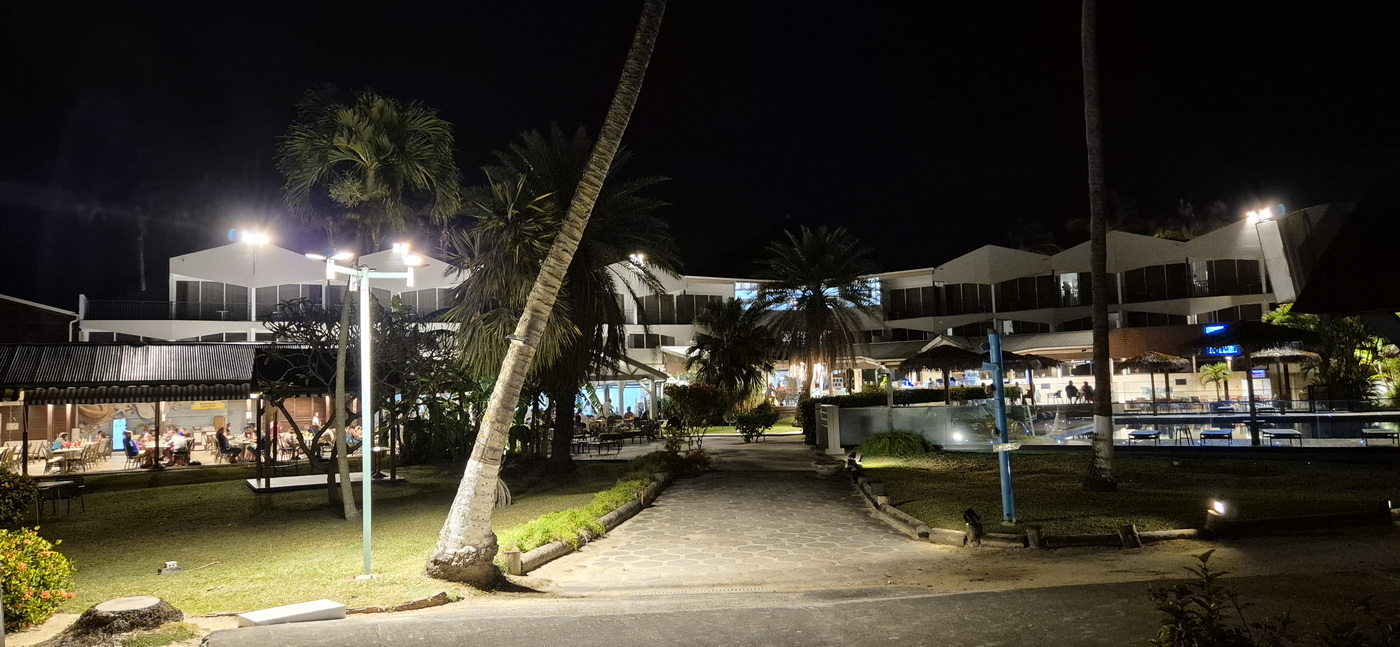 We nemen een taxi naar het Hotel Fleur d’Épée, waar we tegen acht uur in de avond aankomen. We checken in en upgraden ons verblijf naar all-inclusive, wat betekent dat voor 65 euro pp per dag je ook lunch-, dinerbuffet en drankjes de hele dag hebt. We krijgen nu een bandje om onze pols.