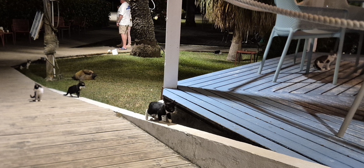 We brengen de spullen naar de kamer en gaan daarna wat eten en drinken. We zien een groepje kittens lopen en dat vinden wij altijd leuk. Tegen 10 uur plaatselijke tijd gaan onze oogjes dicht na deze lange dag. In Nederland is het dan 3 uur in de nacht.