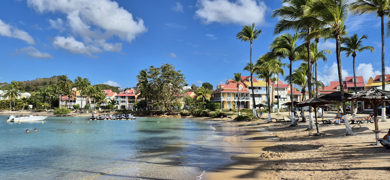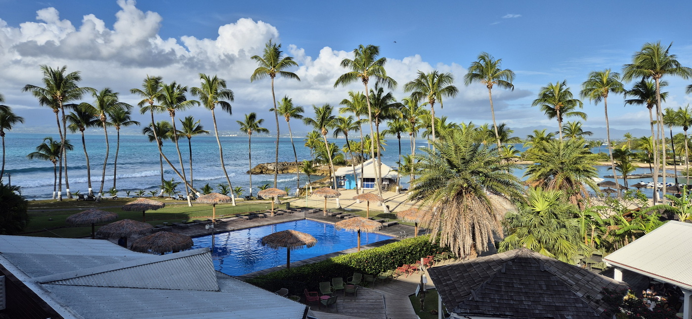 We vliegen Premium Comfort, een klasse tussen Economy en Business. De stoelen zijn breder en er is meer beenruimte dan in Economy. Ook de catering is iets luxer. Het boarden verloopt voorspoedig en we zijn op tijd klaar voor vertrek. De vlucht is rustig zonder turbulentie. Als we Guadeloupe naderen, zien we het rood van de ondergaande zon. Bij aankomst is het dus al donker.