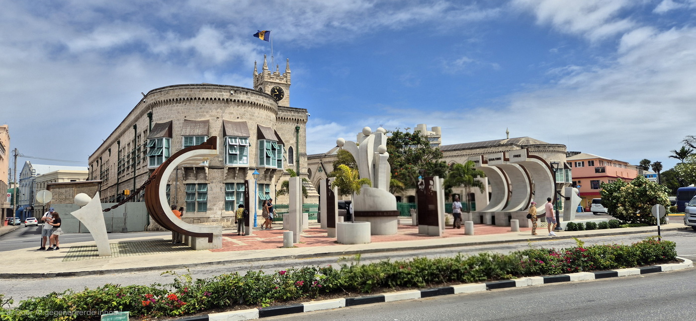 We komen uit in het centrum bij het National Heroes Square, waar een aantal bekende inwoners van Barbados worden geëerd, die de geschiedenis van het eiland hebben gevormd. Er staat ook een plaquette voor zangeres Rihanna bij. Tegenover het plein staat het mooie historische parlementsgebouw.